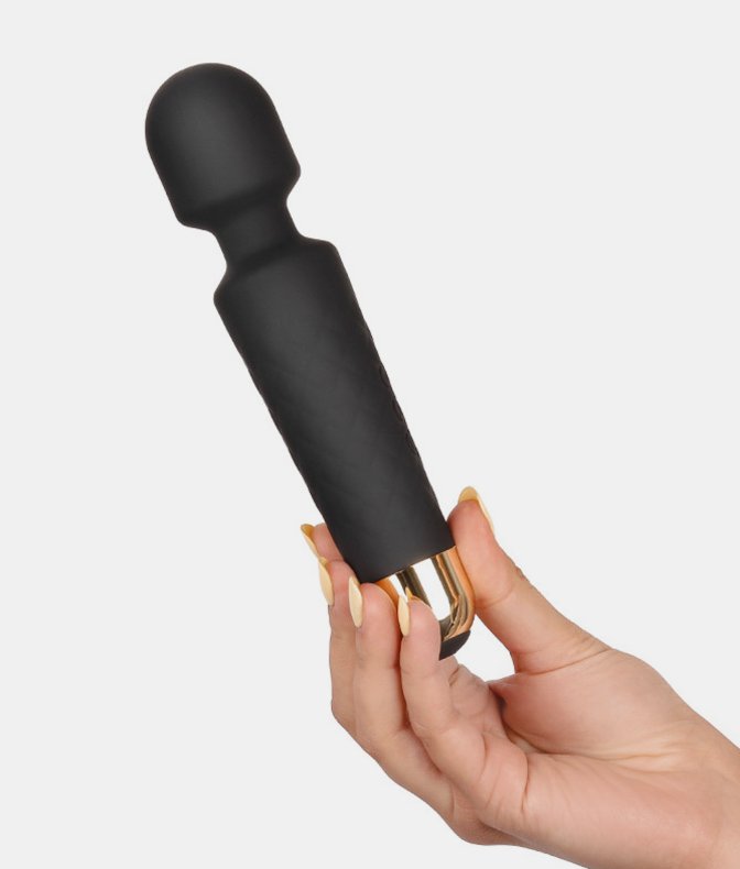 Elegantní masážní přístroj Marc Dorcel Wanderful Black. Erotický masér je vyroben z lékařského silikonu a ABS plastu, je kombinací černé a zlaté barvy s reliéfním, jednoduchým a osvětleným ovládacím panelem. Erotická pomůcka o délce 20 cm a průměru 4,5 cm vibruje v 10 režimech, které umožňují nastavit intenzitu vibrací podle vašich požadavků. Marc Dorcel Wanderful Black je odolný proti stříkající vodě a lze jej pohodlně dobíjet přes USB. Dodává se s látkovým pouzdrem pro skladování.