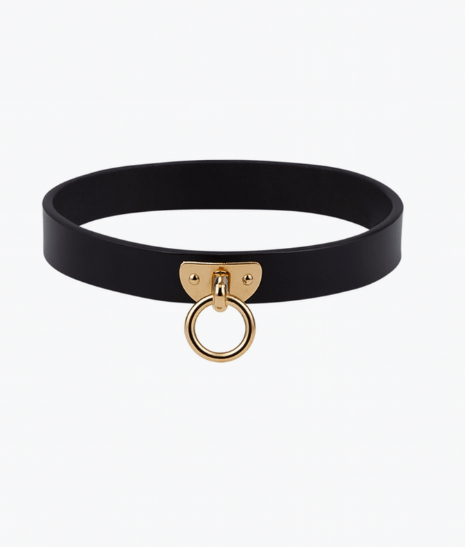 Mr. & Mrs. choker czarny z o-ringiem i złotymi detalami